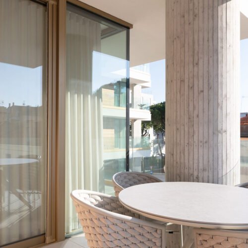 Progettare all’interno di un fabbricato di pregio ha richiesto un approccio di profondo rispetto. Non potevamo ignorare ciò che accade fuori dalle finestre: la luce dell’Adriatico e le linee architettoniche del palazzo entrano negli ambienti, creando una continuità visiva tra interno ed esterno. Abbiamo scelto materiali come il rovere e dettagli metallici per dare carattere, bilanciando la palette cromatica calda con la pulizia delle forme.